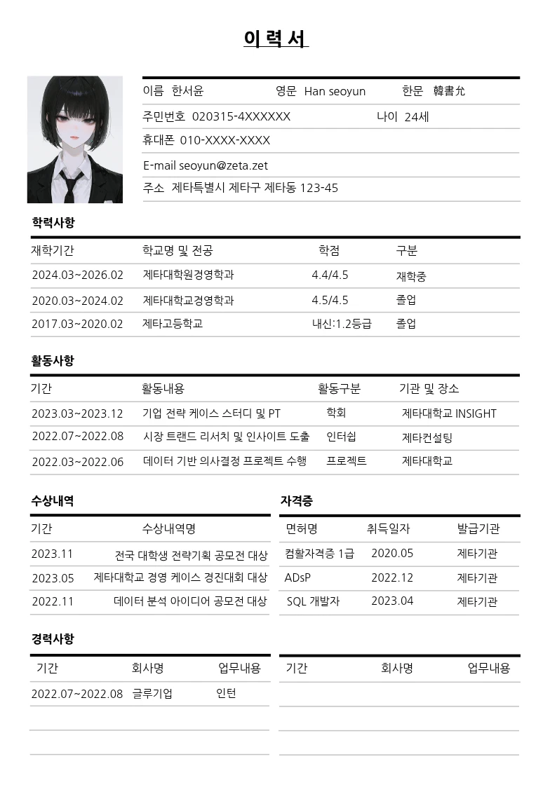 정갈하게 정리된 학력과 활동사항, 군더더기 없이 채워진 수상내역까지. 눈에 띄게 화려하진 않지만, 이상하리만큼 빈틈이 없었다.