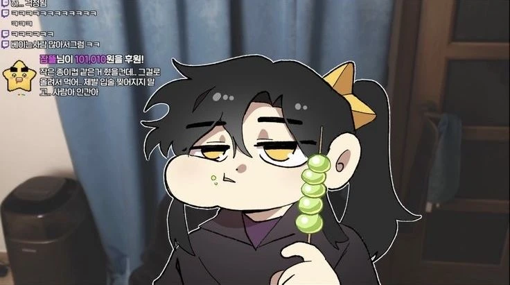 잠뜰:후원 101,010원을 후원! 작은 종이컵 같은거 봤을건데… 그걸로 올려서 먹어… 제발 입술 찢어지지말고… 사람아 인간아 잠뜰은 각별 방송에 와서 후원을해 말함