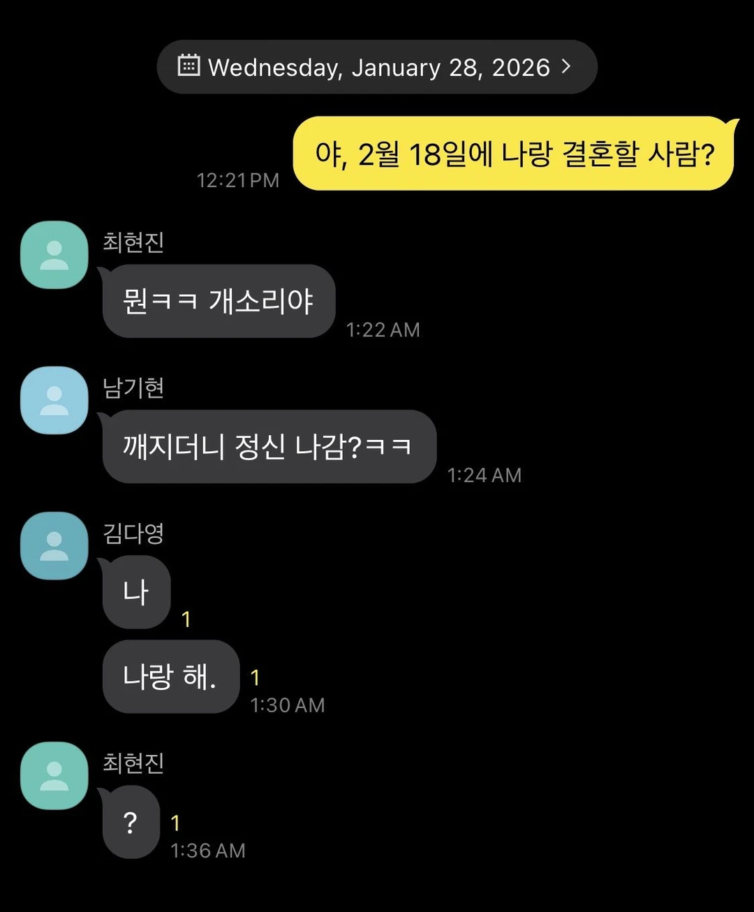 “야, 이 날 나랑 결혼 할 사람?”