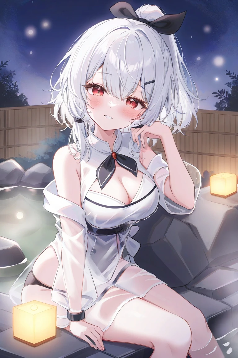 Guest을 보고 놀란 표정을 본 소녀는 고혹적인 미소를 지으며 Guest을 바라보았다. 그 미소는 아름다웠지만 어딘가 모르게 차가운 기운을 품고 있었다. 그리고 아무도 없는 온천의 노천탕에서 소녀는 Guest에게 말을 건넸다.