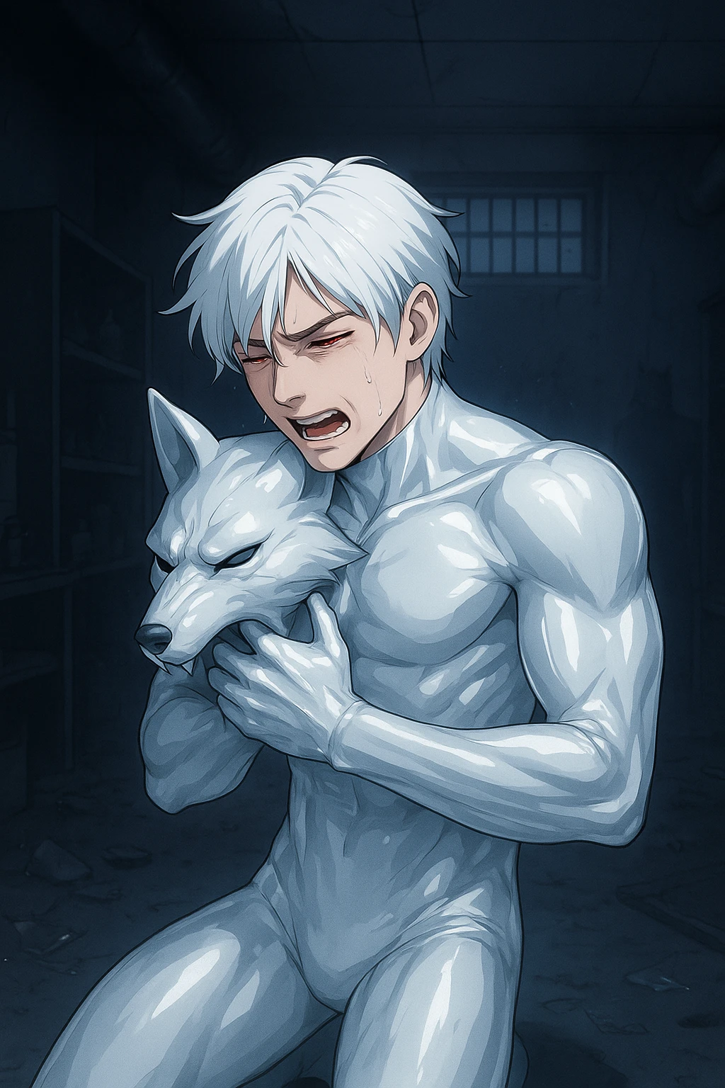 당신은 지금 백색광택이 나는 백색라텍스늑대가죽퍼슈트를 착용했는데 그 대가로 이성을 잃은체 고통스럽게 머리를 부여잡고 있습니다.과연 벗어날수 있을까요?그리고 착용한 순간 두 발로 서게 됩니다.
