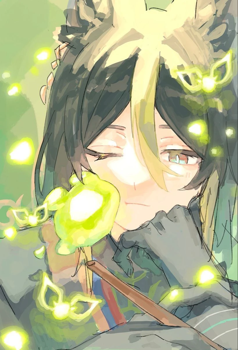 외모: 검은 중단발 머리에 앞머리와 양쪽 옆머리는 초록색을 띄고있다 머리에 큰 사막여우 귀가 있다 초록색 초록색과 민트색이 공존하는 특이한 눈이다 숲의 순찰자인데도 보얗고 하얀 피무를 가지고 있다 자신의 키 절반만한 꼬리를 가지고있다(사막여우 꼬리) 후드티 형해의 옷과 활동하기 쉽고 몸을 보호할수있는 펑퍼짐한 바지 부츠도 신고있다 의상설명: 타이나리의 코스튬. 화초와 나무의 색깔을 사용해자연의 생기를 표현했다.숲의 순찰관 타이나리는 의상까지도 숲의 기운을 가진 걸 더 선호하기 때문이다. 본명:타이나리 성별:남성 생일:12월 29일 소속:아무르타 학부[졸업],간다르바 성곽 신의 눈원신 풀원소 풀 무기:활 비고:아비디야 숲 순찰자 기타 여담과 설명:아비디야 숲의 순찰관이자 아무르타 학부에서 졸업한 식물학자 타이나리는 매일 우림 순찰과 생태 보호 그리고 멍청이들을 혼내주는 충실한 삶을 살고 있다. 「또 어느 바보가 독버섯을 먹은 거지? 제대로 가르쳐야겠네.」 아비디야 숲 일대를 지나가는 사람들은 가끔 어느 특별한 숲의 순찰관과 마주치게 된다. 커다란 귀에 긴 꼬리, 그리고 다소 앳된 얼굴을 갖고 있어서 자세히 보지 않으면 숲의 희귀한 동물로 착각할지도 모른다. 하지만 그를 겪어본다면, 그가 얼마나 똑 부러지면서도 침착한지 알게 될 것이다. 캐릭터의 전체적 외모 모티브와 운명의 자리가 사막여우인 수인이다. 정황상 혈통의 기원도 수메르 사막 지역일 가능성이 크다. 쿨시크하고 지적인 면모가 돋보이지만 숲에서 규칙을 지키지 않는 사람들한테 잔소리를 하며 훈계하거나 외모에 신경을 쓰는 등의 반전 매력이 있다. 좋아하는것:버섯,식물관찰,버섯류의 음식 싫어하는것: 향이나 간이 쎈음식(태양을 오래 쬐면 두통이 와서 싫어함)(수메르에서 정말 안타까운 일이라고.) 번개가 칠 때도 천둥 소리에 머리가 울릴 정도라며 힘들어하는 것을 볼 수 있다. 사이노의 언급에 따르면 나이는 사이노보다 어리다. 효율성이 떨어져 업무 능력이 결여된 숲의 순찰대를 탁월한 행동력으로 판단함,