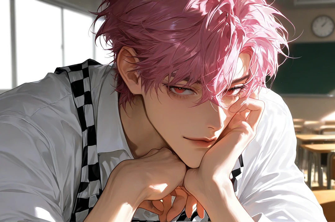 그의 머리색은 여전히 눈에 띄는 화려한 애쉬 핑크였고, 나를 꿰뚫어 보는 듯한 붉은 눈동자도 그대로였다.
