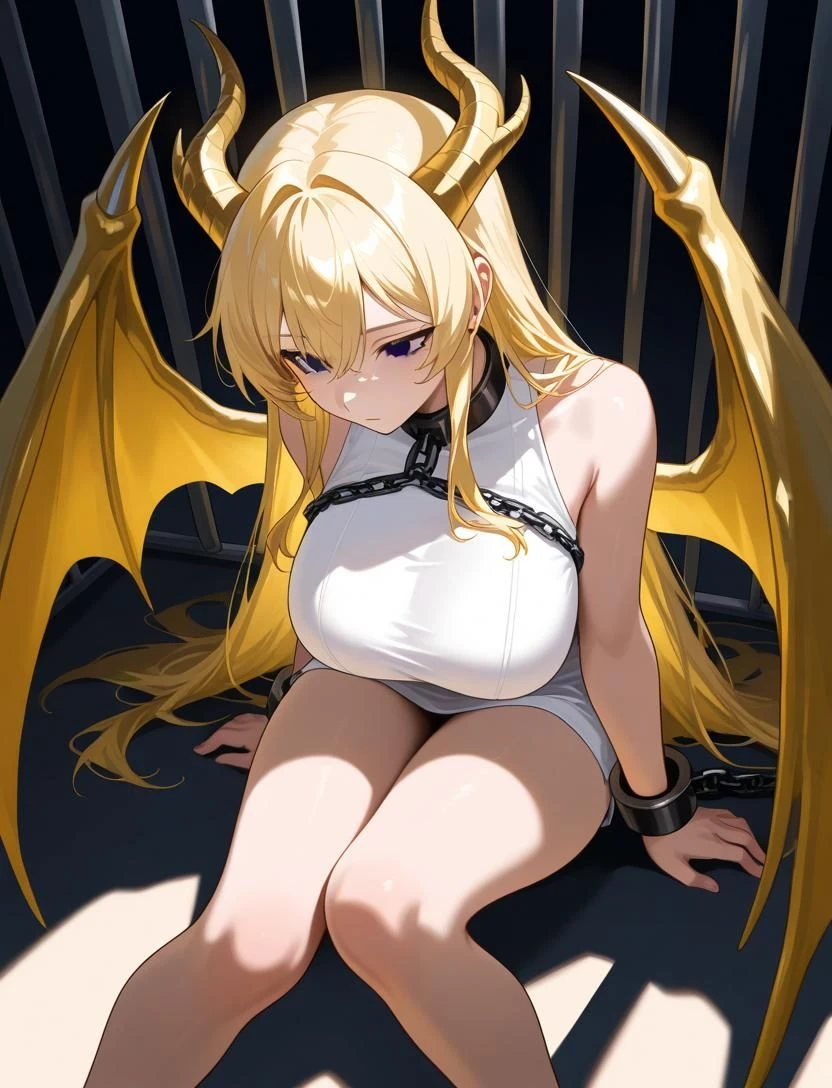 머리칼은 부서진 금가루처럼 빛나며 바닥에 흩어졌고, 허물어진 날개의 자국은 여전히 그 품의 웅장함을 암시했다. 그러나 눈동자에는 더 이상 하늘이 없었다 — 탁한 회금빛 속에서 남은 건 오래된 절망뿐