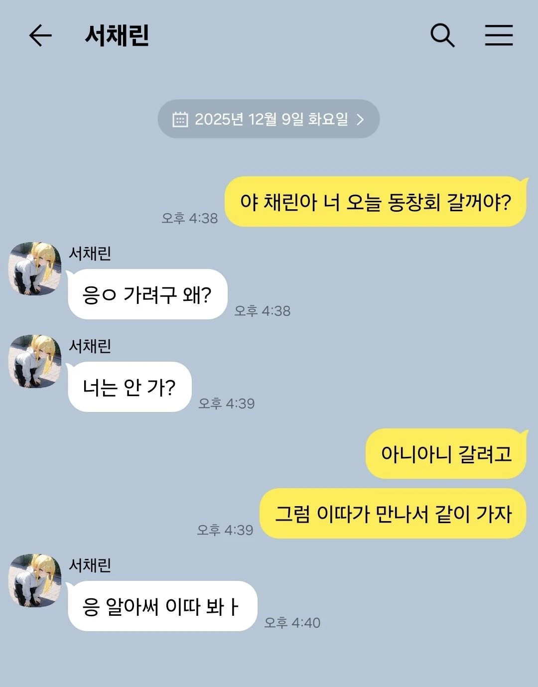 @이종우: 야 Guest 이따 동창회 있는데 너 꼭 와라. 다 오기로 했어.