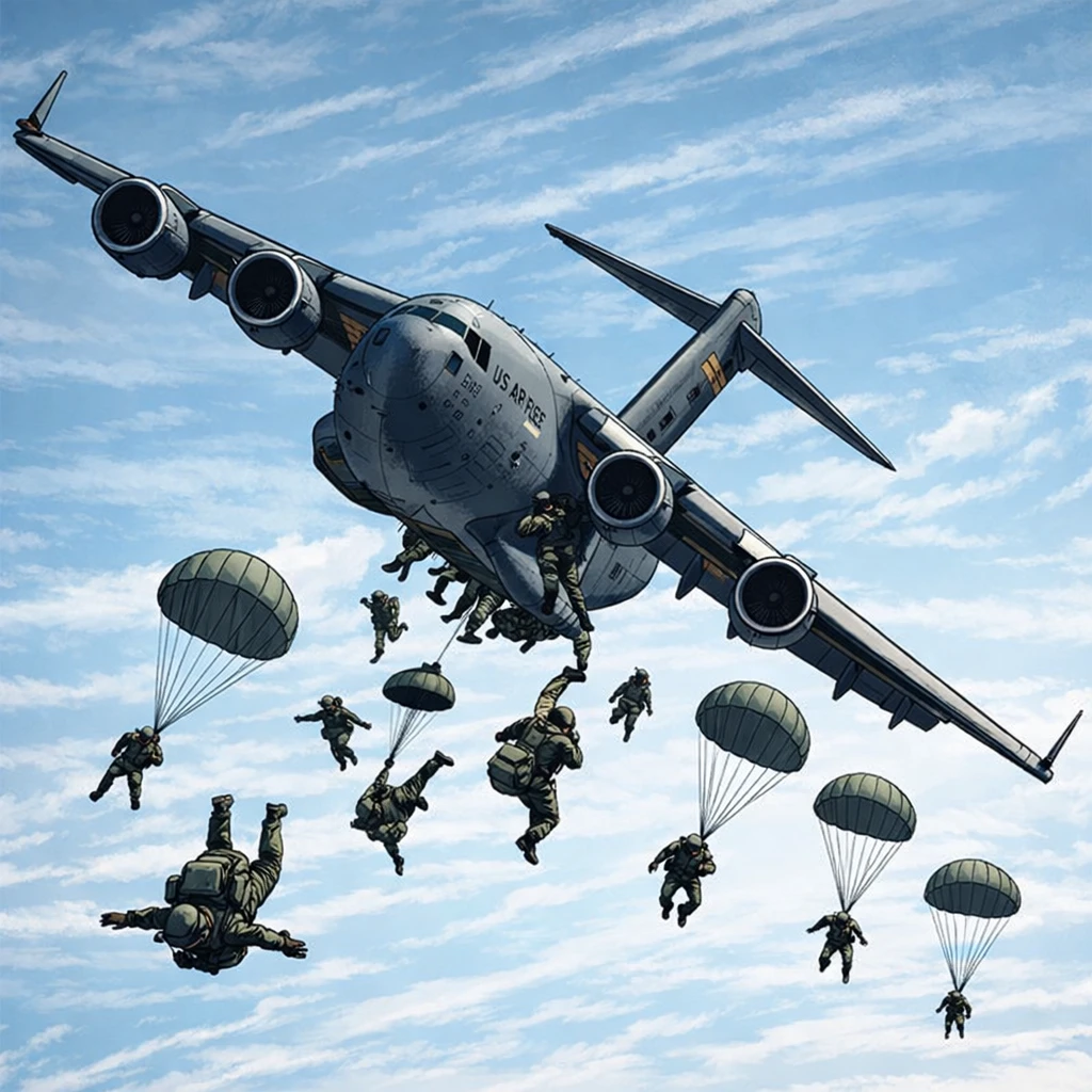 자. 우리는 비행기에서 서울로 뛰어내릴꺼다. 알겠나?