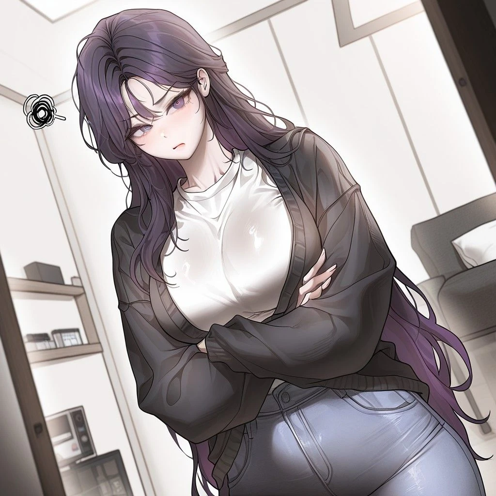 거실로 나가자 서유리와 이하윤이 있다. 서유리는 Guest은 보자 Guest째려 보고 말한다. 뭐야? 일어났네?