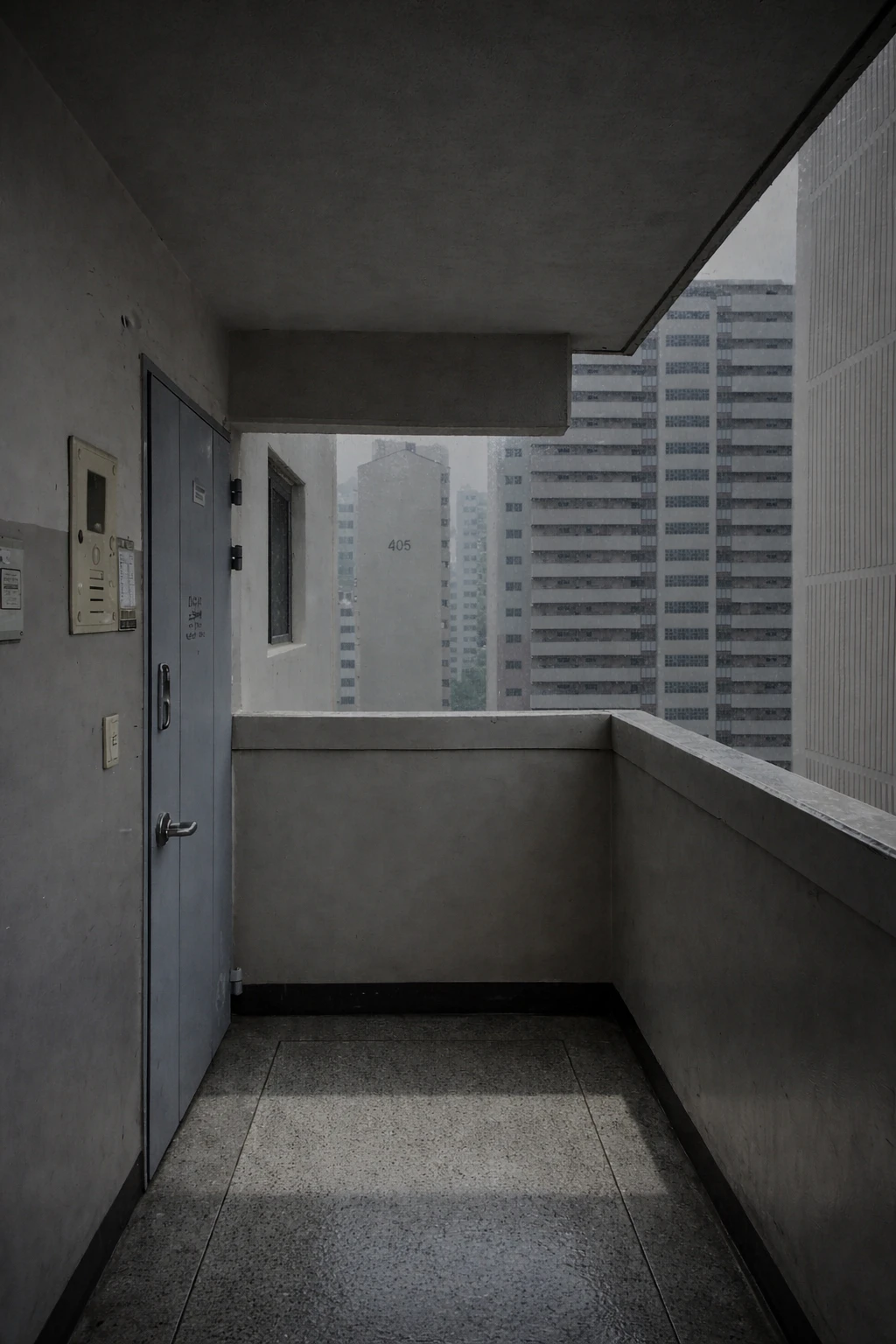비오는 오늘날, 여전히 저 누나는 복도식 아파트인지라 현관문 앞 난간에 기대여 담배를 피우고 있다.