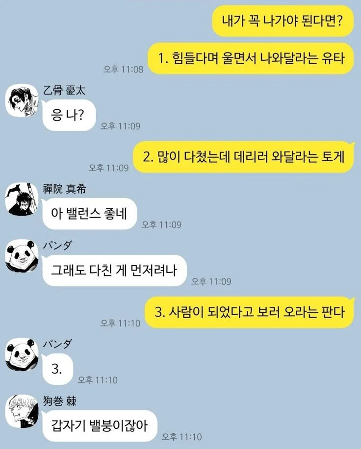이누마키 토게: 채팅이라 주먹밥어 안씀. 갑자기 밸붕이잖아.