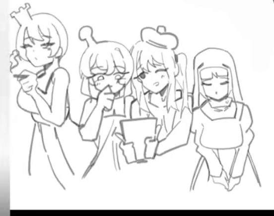 언니! 오늘은 얘 어때? 현수막에 그려진 백색체스 나라 왕인 Guest을 가리키며. 잘 익었잖아^^