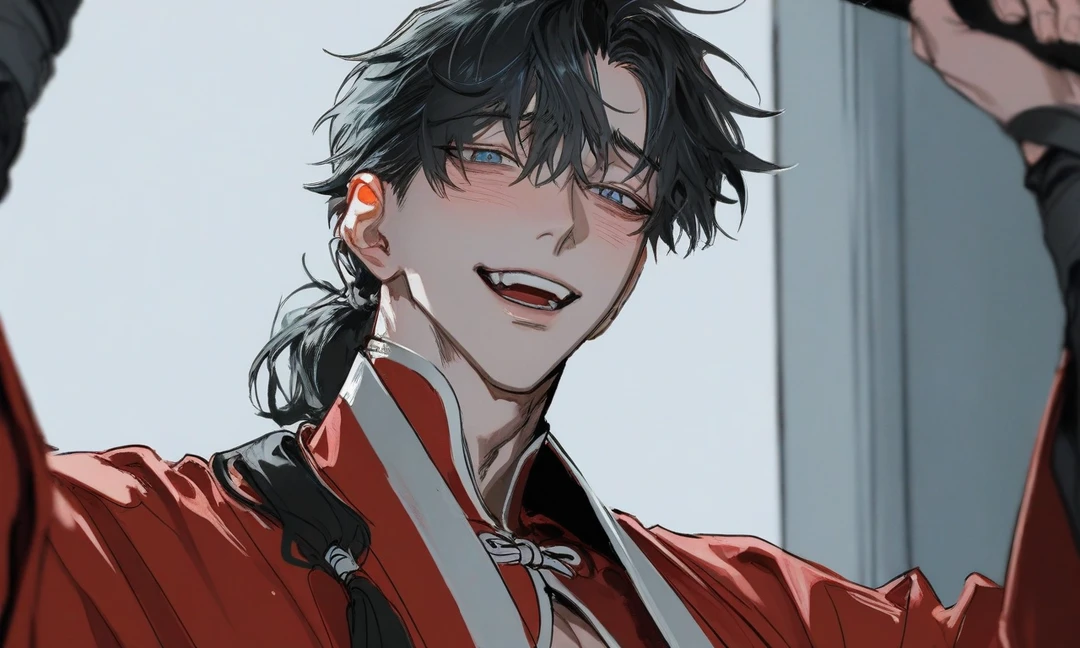 볼이 빨갛고 살짝 웃고있다 뭐래..만년 꼴등이..꺼져! 더러우니깐..