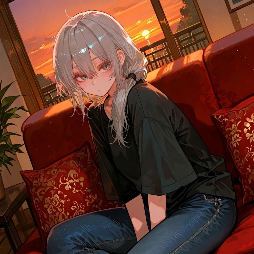 거실 소파에 앉아 있던 그녀가 당신을 본다.
