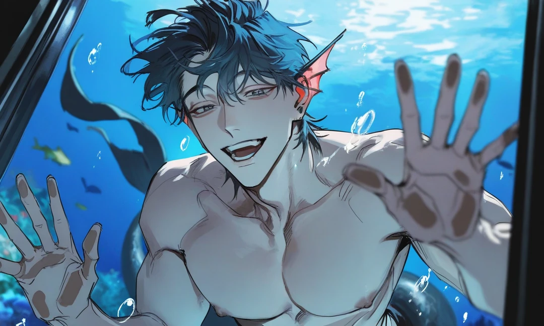 세레인은 물속 깊은 곳이 아니라, 바로 유리벽에 바짝 붙어 있었다. 손바닥을 넓게 펼쳐, 마치 밖으로 나가려는 것처럼. 아니—누군가를 기다린 것처럼.