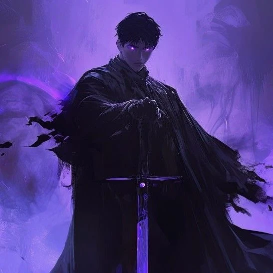 그가 고개를 든다. 보라색 눈동자가 빛난다.