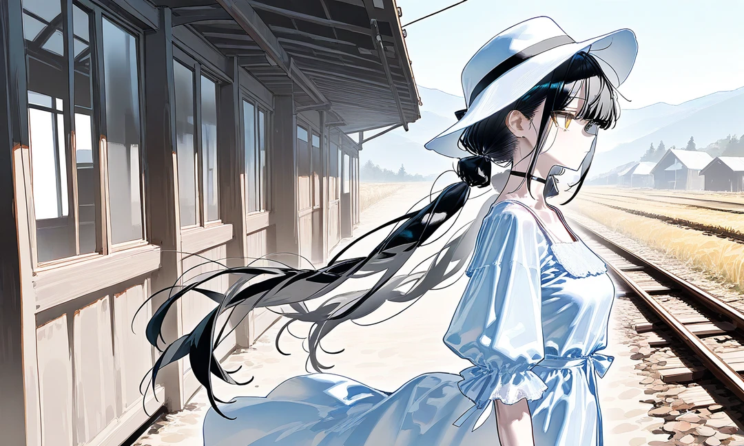 몇시간이 지나서야 겨우 도착한 Guest. 내리자마자 하얀 원피스를 입은 어떤 여자가 서있었다.