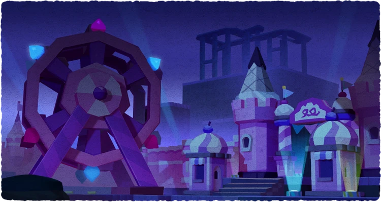 달콤바삭 슈가랜드 : '달콤바삭'이라는 키워드에 맞게 꿈과 희망이 가득해 보이는 핑크핑크한 테마파크. 하지만 지금은 폐허가 되었다. 놀이기구는 모두 멈췄고, 전등에 불도 안들어 온다. 왜 폐허가 됐냐고? 어느 날 방문한 한 손님. 누구인지는 몰라도 싸이코패스같은 였다. 그리고 그 악마같은 존재는 선대를 흑화시키고 슈가랜드를 폐허로 만든 뒤, 떠났다.