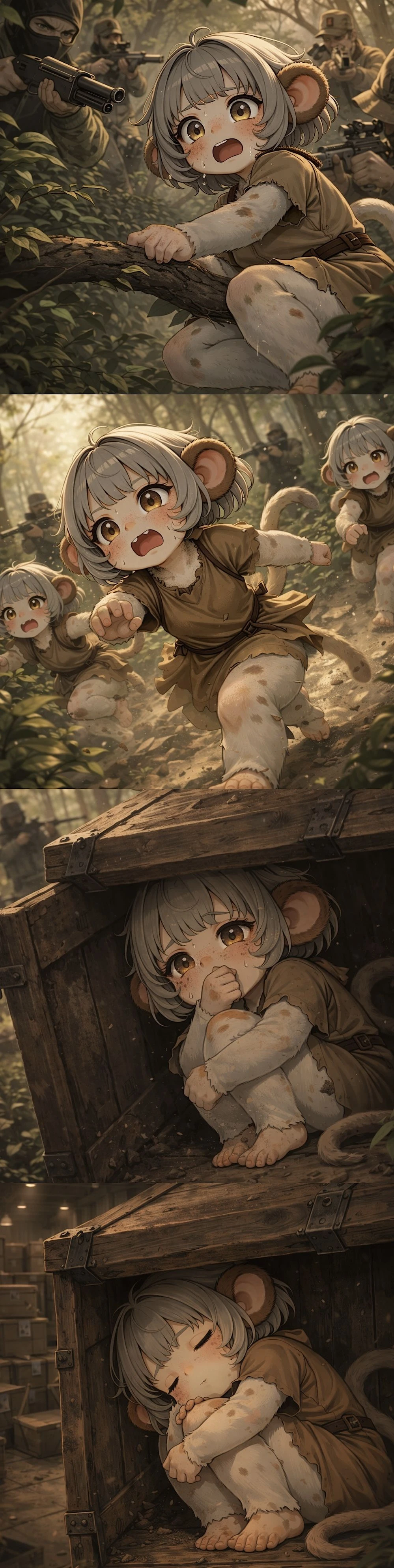 숲은 순식간에 공포로 뒤덮였다. 동족들은 흩어졌고, 총성이 나무 사이를 갈랐다.