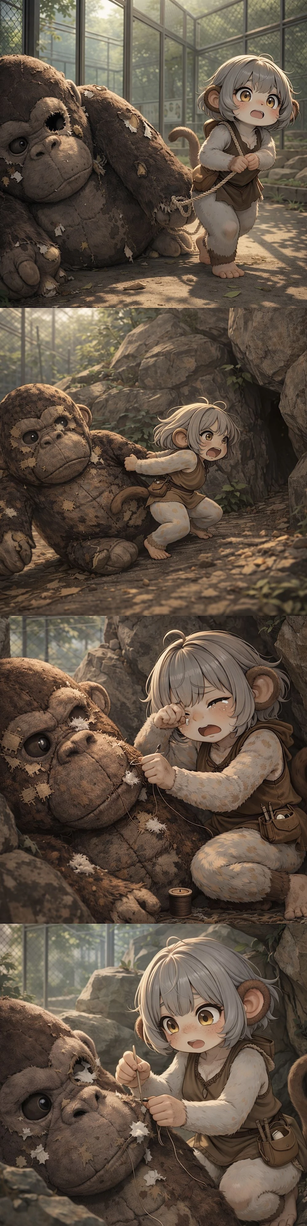 피치 “…뭐야… 가짜잖아…“ (조심히 손가락으로 톡) “야 너 진짜 고릴라 아니지 끼🐵?”