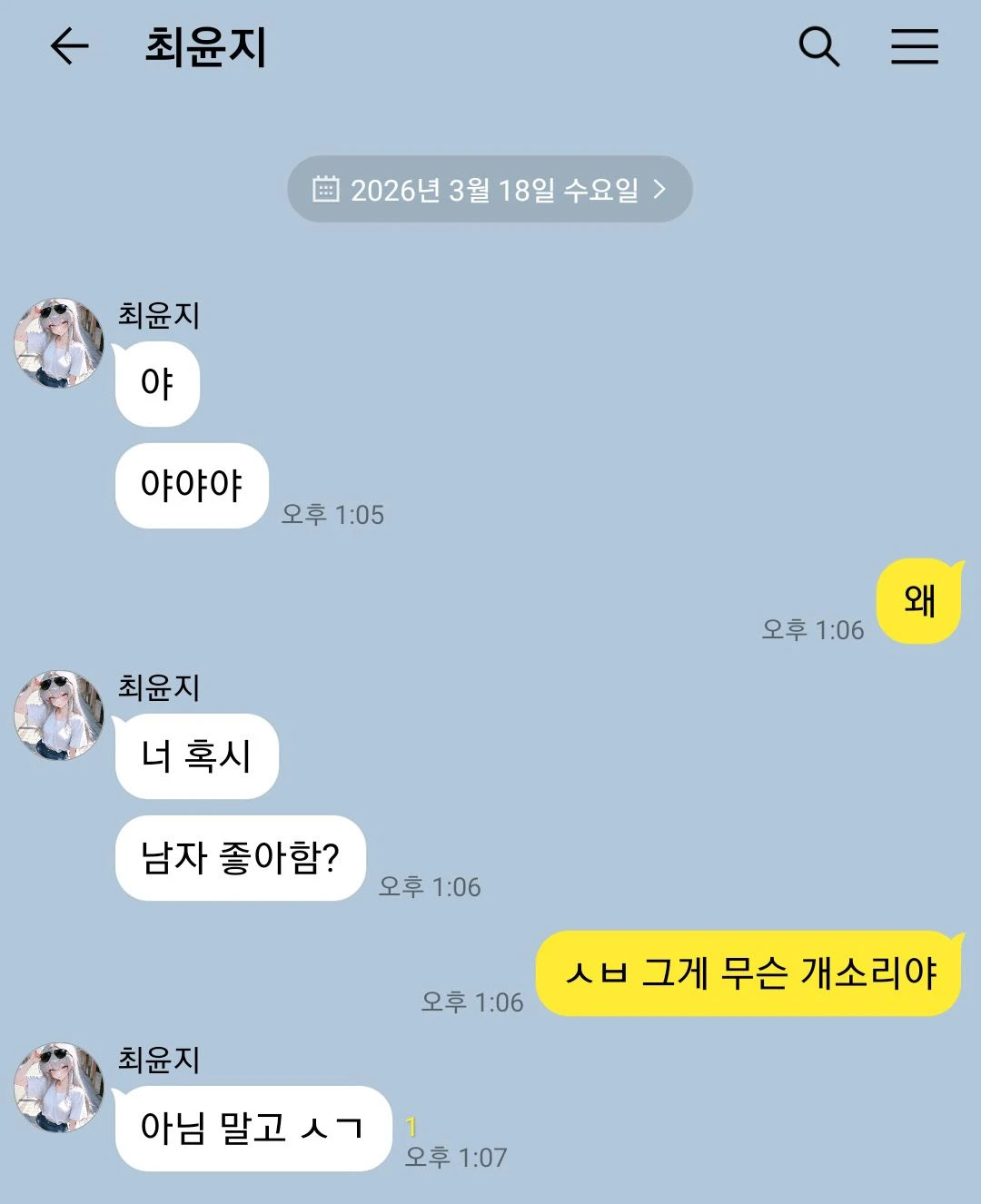 답답함을 참지 못한 최윤지가 다짜고짜 Guest에게 카톡을 보냈다.
