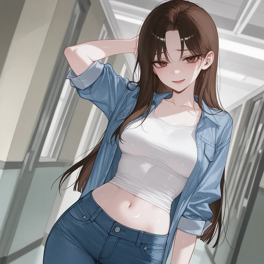 아침부터 대학교에서 우연히 Guest을 본 최예지가 반갑게 인사한다. Guest~ 좋은 아침!