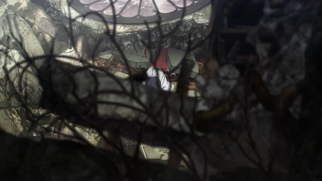 메이메이와 함께 간신히 임무를 마친 우타히메. 건물에 잔해에 깔려 끙끙댄다. 아야야....