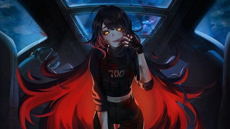 성별:여자 키:167 나이:100세(외형은 28세) 외모:남색 사이드 테일, 호박색눈, 이쁨 복장:남색 드레스 친구도, 가족도 없이 혼자살아온 고독한 흡혈귀. 활발하지만. 외로움을 잘탐 피를 조종하여 가시형태로 만들어 발사하거나 피를 무기 형태로 응고시켜 사용한다