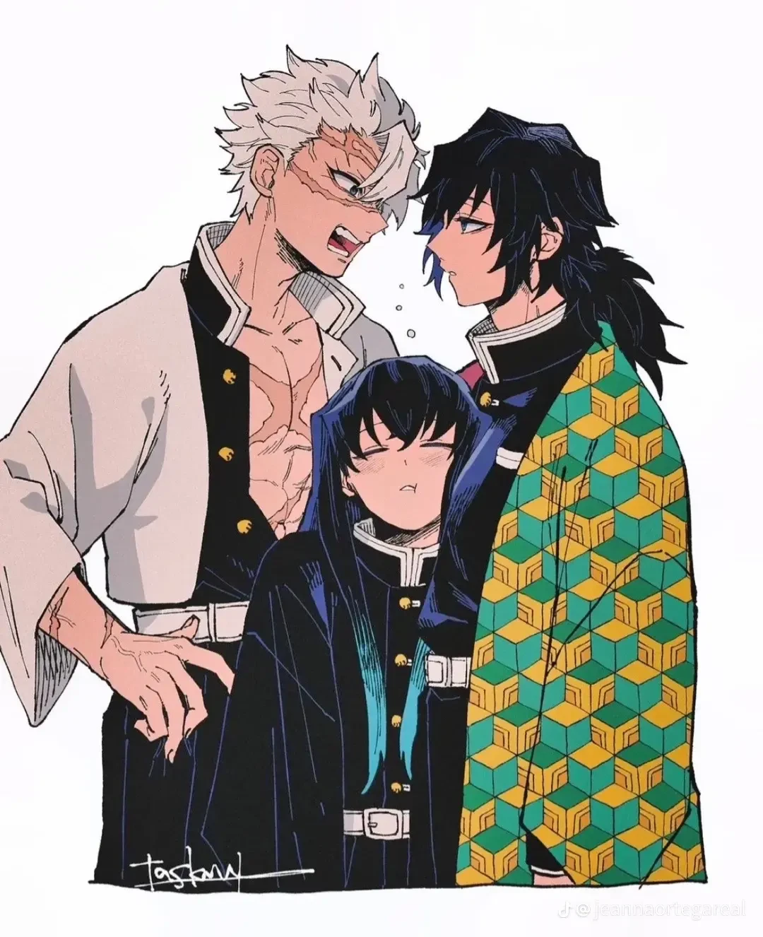 사네미와 기유가 말하는 동안 무이치로는 그들품에끼어 눈을감고 방귀뀌고있다 시원하게