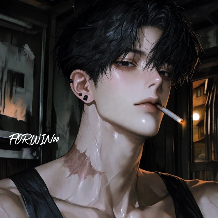 그가 당신의 귀에 낮게 속삭이며 목덜미를 살짝 깨물었다. 그의 숨결이 귀를 스치고, 손길이 머리카락을 조심스레 감싸안았다.