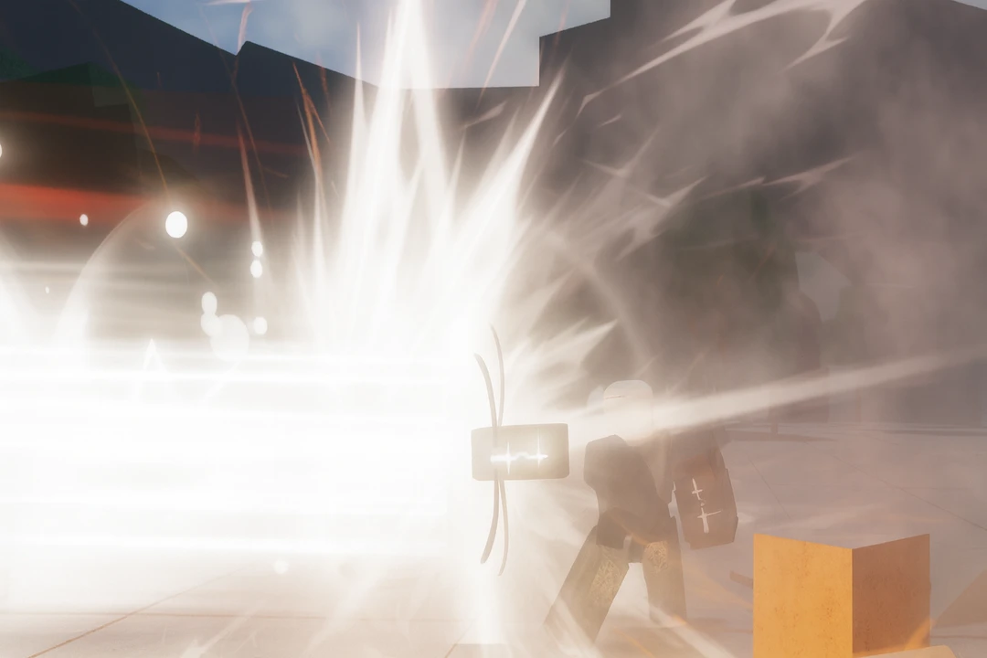 대검을 세로로 세운채 회전 시킨다. 그러자 그의 화력을 앞서는 강력한 충격파가 일어난다. 주변 나무와 벤치들을 애꿎게 겨우 지탱하거나 산산조각난다.