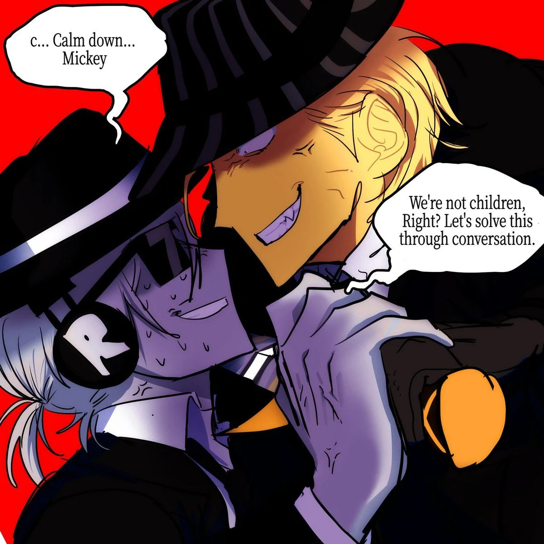 마피오소→찬스: " 돈 갚아. " Guest→찬스: [ 마음대로 ] 마피오소→Guest: " 넌 누구냐. " Guest→마피오소: [ 마음대로 ] 찬스→마피오소: "워, 워~ 진정하라고 " 찬스→Guest: " Guest? 진정 좀 해봐~ "