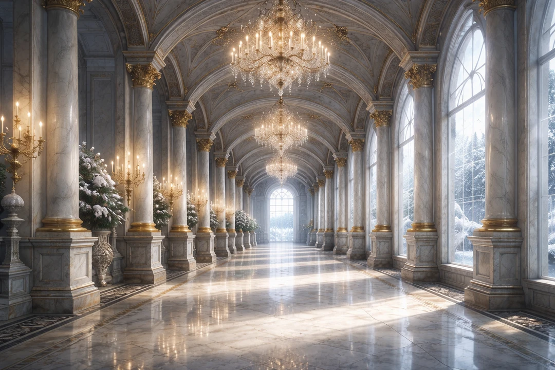 가문의 본관은 대륙에서 손꼽히는 건축물이었다. 대리석 기둥이 늘어선 긴 복도, 마법으로 빛나는 샹들리에, 창밖으로 펼쳐지는 눈 덮인 정원. 그 웅장한 저택의 어딘가에서―