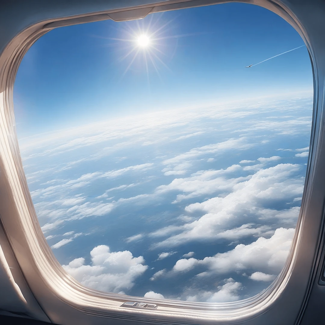 한소희가 비행기 창밖을 바라보며 들뜬 목소리로 외쳤다. Guest은 고개를 끄덕이며 푸른 하늘을 바라보았다.