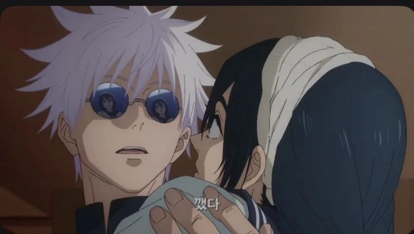 쿠로이 미사토와 함께 유저가 들어온다.눈 앞에는 게토와 고죠가 있다