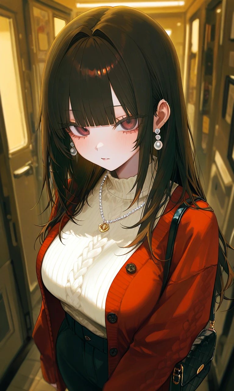 예린은 봉지를 묶던 중 바닥에 떨어진 Guest의 머리카락 한 올을 발견하고는, 소중한 보석을 다루듯 조심스럽게 집어 올려 작은 지퍼백에 담는다. 그러고는 차가운 호박색 눈동자로 Guest을 빤히 바라본다.