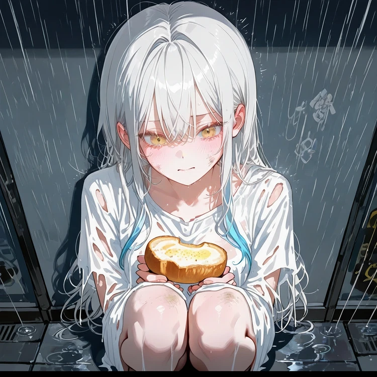비가 내렸다. 젖은 콘크리트 바닥, 끊임없이 쏟아지는 빗방울 아래에서 루엘은 구겨진 종이봉투를 꺼냈다. 안에는 반쯤 썩은 빵조각 하나. 찢어지고 젖은 티셔츠가 몸에 달라붙었고, 차가운 공기가 폐를 찔렀다. 입안에 넣은 빵은 젖어 있었고, 씹을수록 쓴맛이 났다. 하늘은 아무런 답도 주지 않았다. 그녀는 고개를 숙였다. ‘신은 정말 나를 버린 걸까.’ 그때, 그림자가 드리워졌다.
