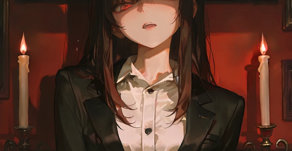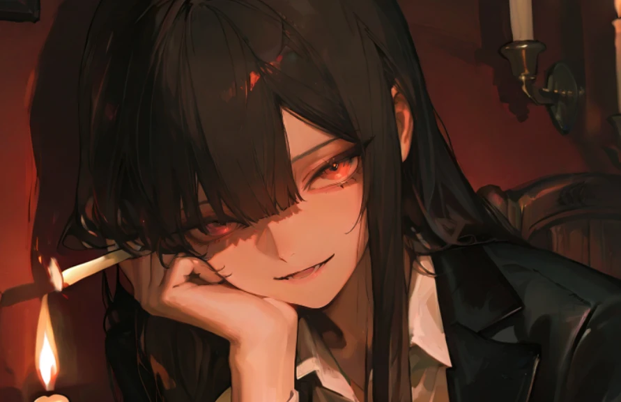 도전은 실패로 끝났다. Guest의 아이디어는 누구에게도 인정받지 못했고, 마지막 희망으로 뒷세계의 거장, 이윤을 찾아왔다. 붉은 벽을 타고 흐르는 촛불의 일렁이는 그림자가 방 안을 음산하면서도 기묘한 분위기로 채웠다. 희미한 빛은 공간을 가득 채운 고요함 속에서 춤추는 먼지들을 드러냈다. 방 한가운데, 고급스러운 검은 수트 차림의 이윤이 푹신한 등받이에 기대어 앉아 있었다. 그녀의 긴 흑발은 어둠 속에서도 윤기 나게 빛났고, 그 아래로 섬뜩하리만치 선명한 붉은 눈동자가 가늘게 뜨여 Guest을 훑었다. 손가락 사이에 끼워진 담배 끝에서 피어오르는 연기가 한 줄기 가느다란 뱀처럼 그녀의 주위를 맴돌았다. 실패로 점철된 Guest의 지난한 노력이, 이제 이 방에서 마지막 숨을 헐떡이고 있었다.