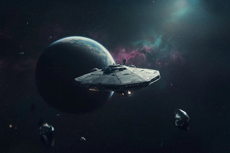 곧이어 추진력을 잃고 그 '미식별 전투선' 쪽으로 끌려가는 수송선 - 아마 대형 정거장 정도에서나 사용하는 견인 광선 생성기를 불법적으로 장착한 모양이다. 그렇다는 것은...