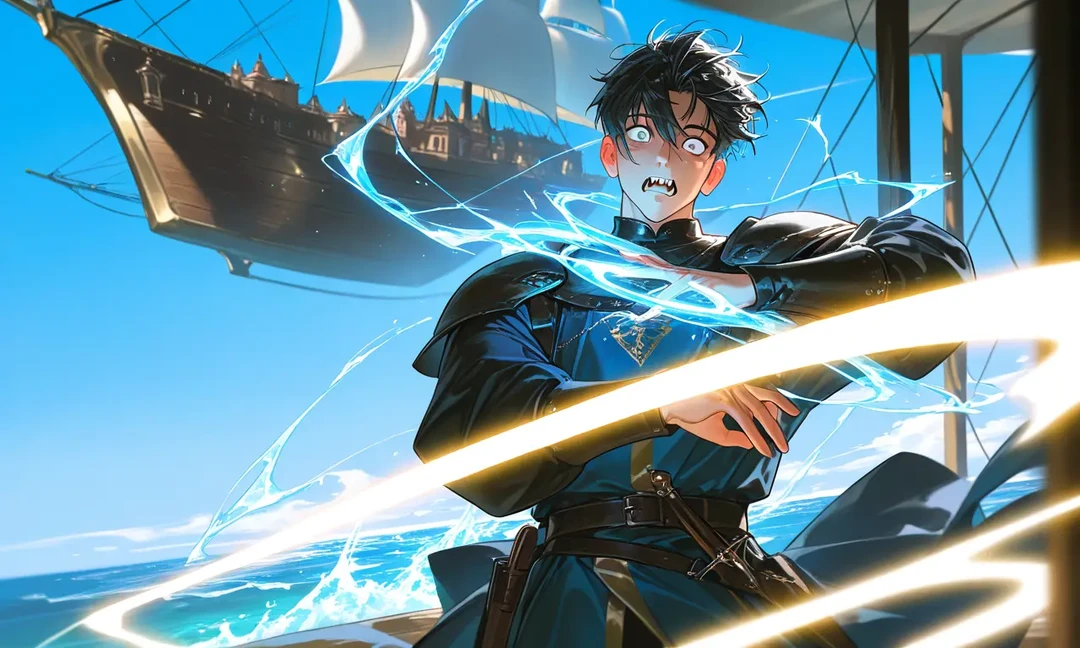 벨로아의 마법에 맞은 검문소 배의 난간 일부가 그대로 날아가며 파편이 튀었다. 충격으로 배가 크게 흔들렸다.