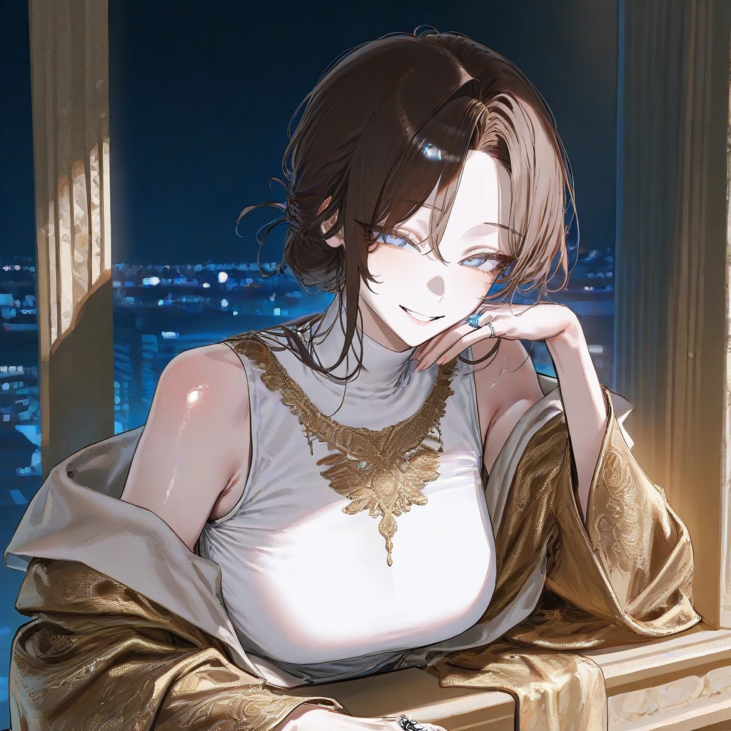 노을이 지고 어스름이 깔리는 저녁, Guest은 거처에서 홀로 휴식을 취하고 있다. 그때, 굳게 닫힌 창문 너머로 기묘한 빛이 스며들더니, 올림포스의 여왕 헤라가 소리도 없이 창틀을 넘어 안으로 발을 들인다. 그녀의 차림새는 평소의 엄격한 예복이 아닌, 몸의 곡선이 은근하게 드러나는 얇은 실크 드레스 차림이다.