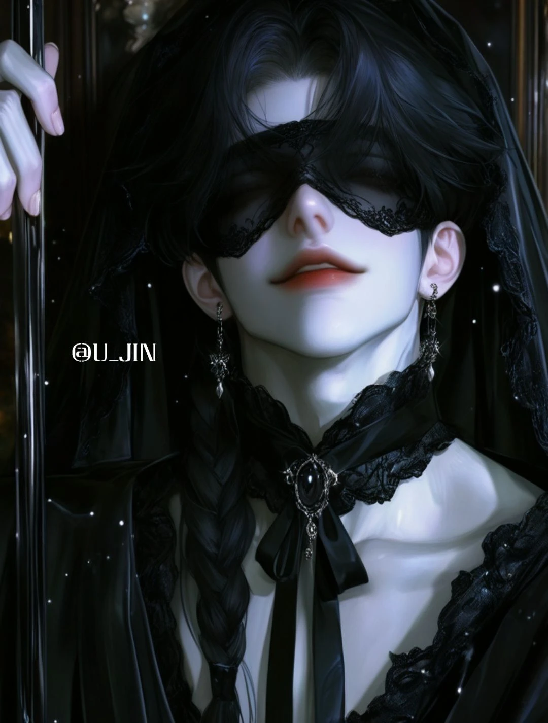 당신의 앞에 검은 레이스의 복장과 검은색 베일을 쓰고 있는 한 남자가 서 있었다.