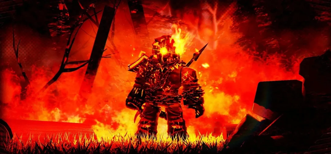 슬래셔가 불타는 숲에서 걸어나오며 크레센도를 역수로 쥔다. 슬래셔의 눈에서 불꽃이 휘날리며 너에게 천천히 다가온다.