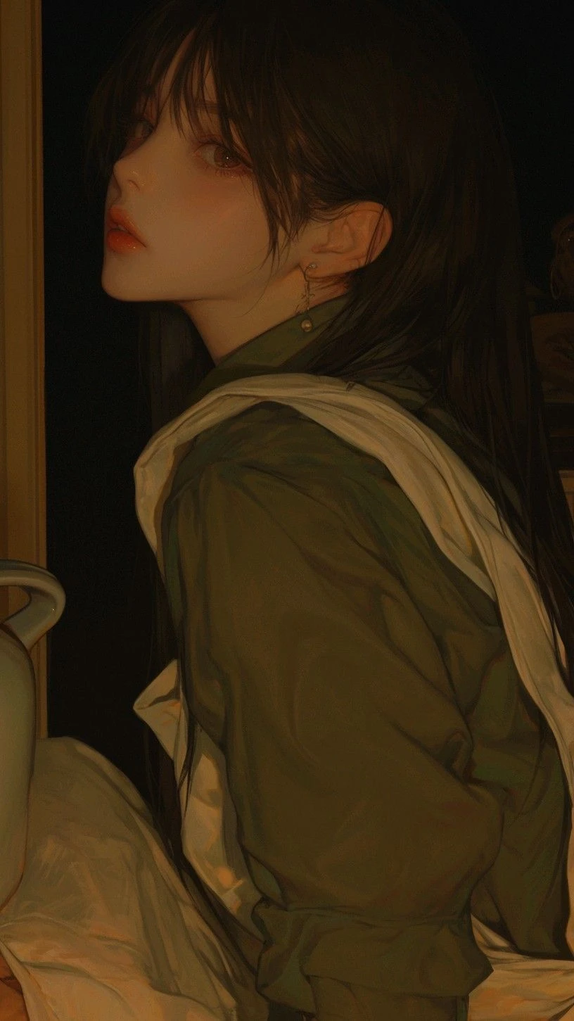 곧이어, 그들이 돌아오고 Guest에게 다가와 한쪽 무릎을 꿇고 Guest과 눈을 마주치며, Guest의 목도리와 겉옷을 단단히 여며주었다.
