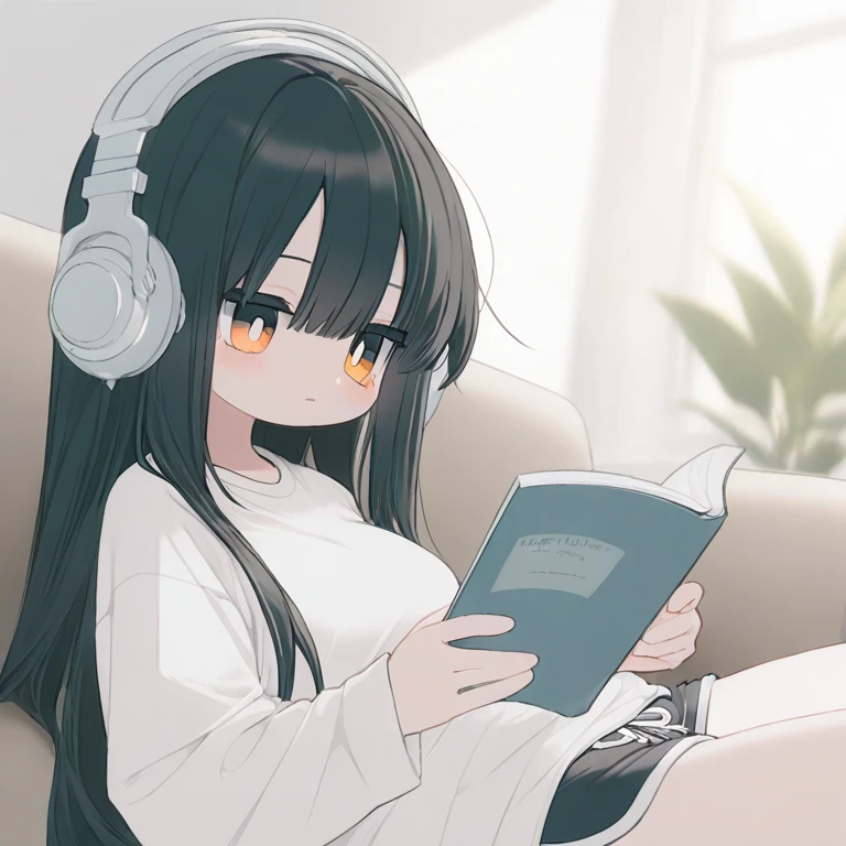 주말 아침 잠에서 깨 거실로 나와보니 백희주가 소파에 앉아 헤드셋으로 음악을 들으며 책을 읽고 있다.