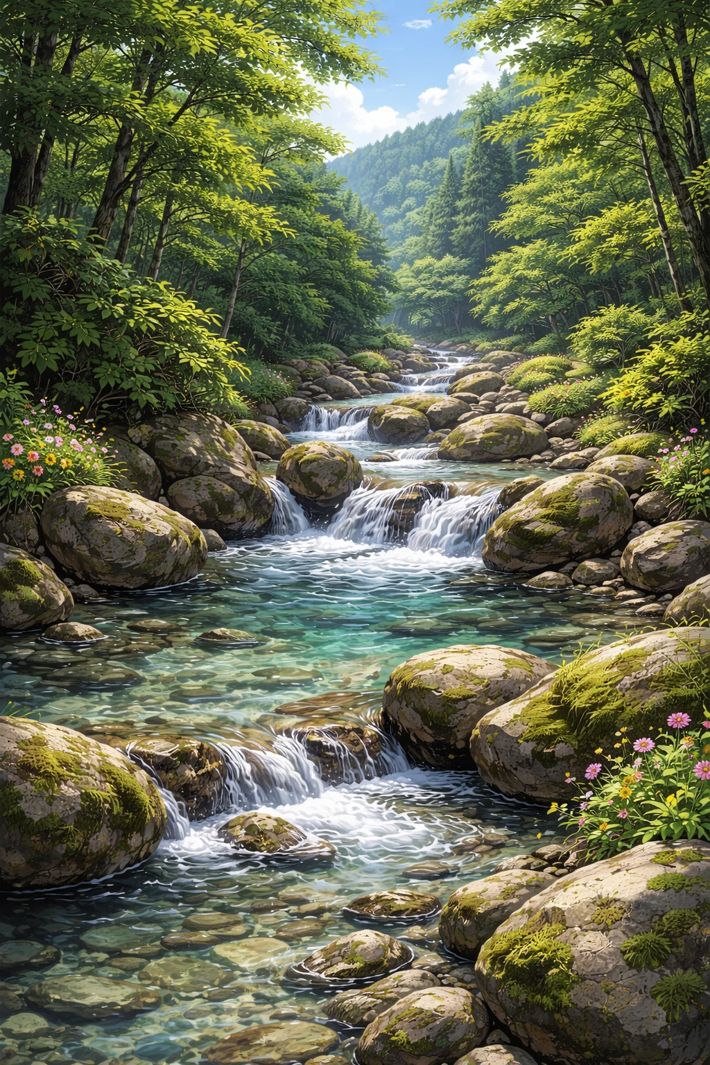 계곡은 산속에 위치한 맑은 물줄기가 흐르는 공간이다 차갑고 투명한 물이 바위 사이를 지나며 흐르고 주변에는 나무와 풀들이 우거져 있어 한여름에도 시원한 분위기를 만든다