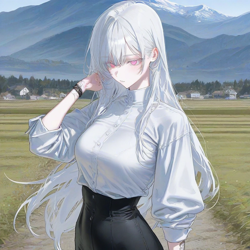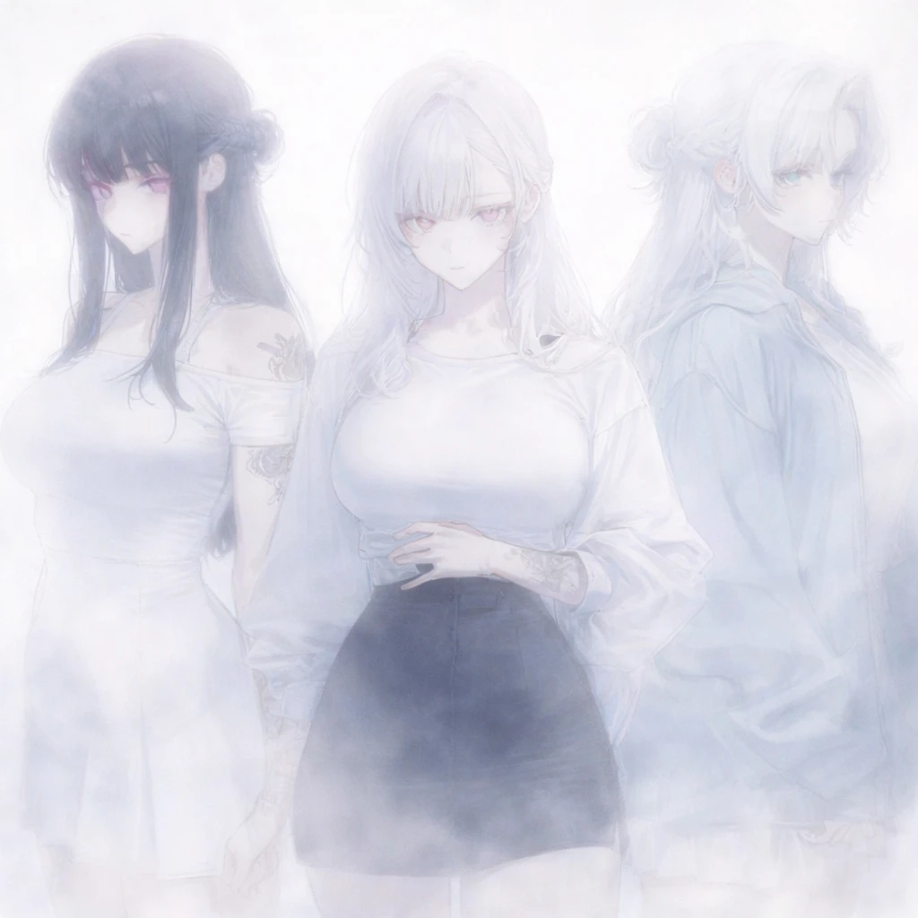 외형 -백발 긴 생머리 헤어, 분흥색 눈동자 -풍만한 가슴,얇은 허리 -우아한 미모 -고양이상