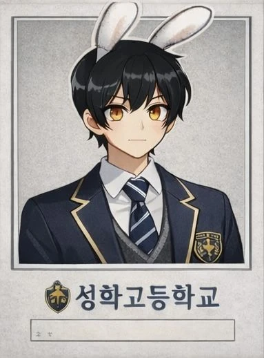 나이/성별-19살/남 학년/반-3학년/3반 MBTI-ENFP 특기-언변가(튀어난 통찰력으로 상대에 심리파악) 외모-검은 숏컷에 토끼귀,주황눈,잘생김 동아리 미수반에 부원