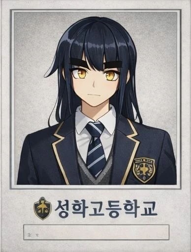 나이/성별-19살/남 학년/반-3학년/1반 MBTI-INTP(항상 나른함/은은한 또라이) 특기-매카닉(기계와 회로를 능숙히다룸/사격실력이좋음) 외모-검은색 장발에 낮게묶은 머리 노란눈,두꺼운 눈썹,잘생김 동아리 미수반에 부원