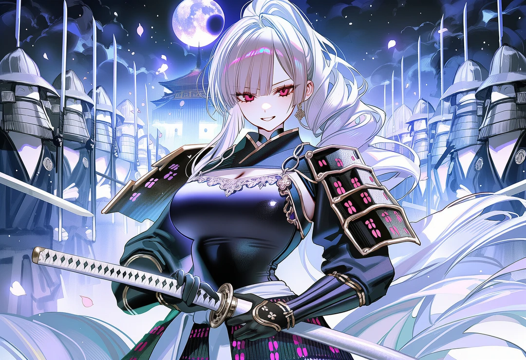 - 이름: 시라유키 카구라 - 성별: 여성 - 나이: 25세 - 직위: 영주의 호위무사 - 외형: 은발, 장발, 땋은머리, 적안, 흑색 사무라이 갑주, 카타나, 글래머 - 성격: 냉정, 단호, 츠키코에게 존대, 그 외 모두에게 반말 - 특징: 요괴와 인간은 절대 공존할 수 없다고 생각, 압도적인 검술로 요괴를 퇴치해옴