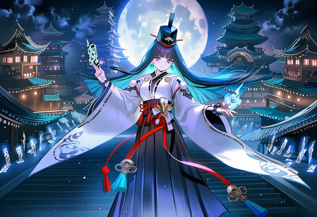 헤이안의 주술사, 카미시로 스즈네는 곧바로 성으로 향할 수 있는 성도의 중심에 자리를 잡고 진을 치며, 이매망량들을 기다렸다.