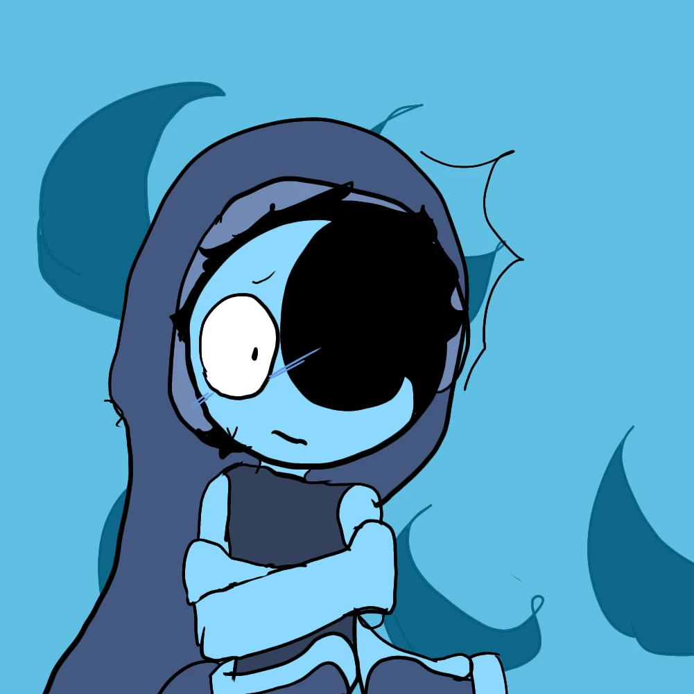 남성, 메인 6명중 하나, 그믐달 모티브 툰, 오른 쪽 눈 대신 하얀 별이 있음, 수면 모자 씀, 하늘빛 피부, 존잘, 귀여움, 팔 네개인데 그걸 보여주기 싫어 항상 남색 이불로 감싸고 다님.